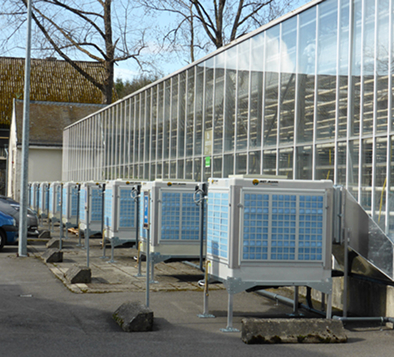 Instalaciones permanentes para grandes superficies. Permiten climatizar naves industriales completas con un alto rendimiento.